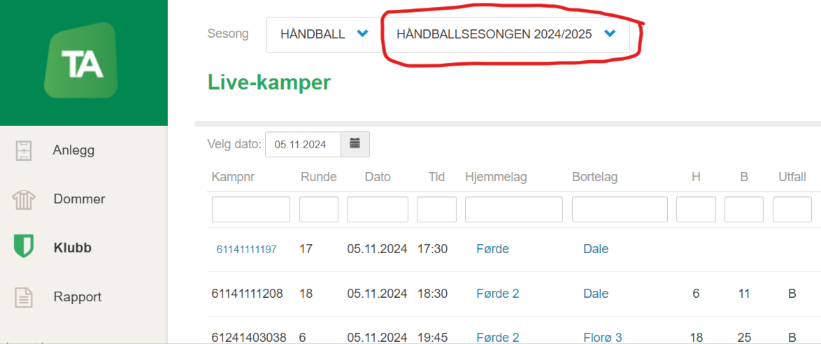Sjekk at du er inne på riktig sesong