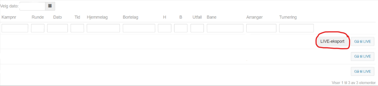 Finn riktig kamp og velg "LIVE-eksport"
